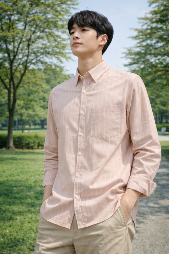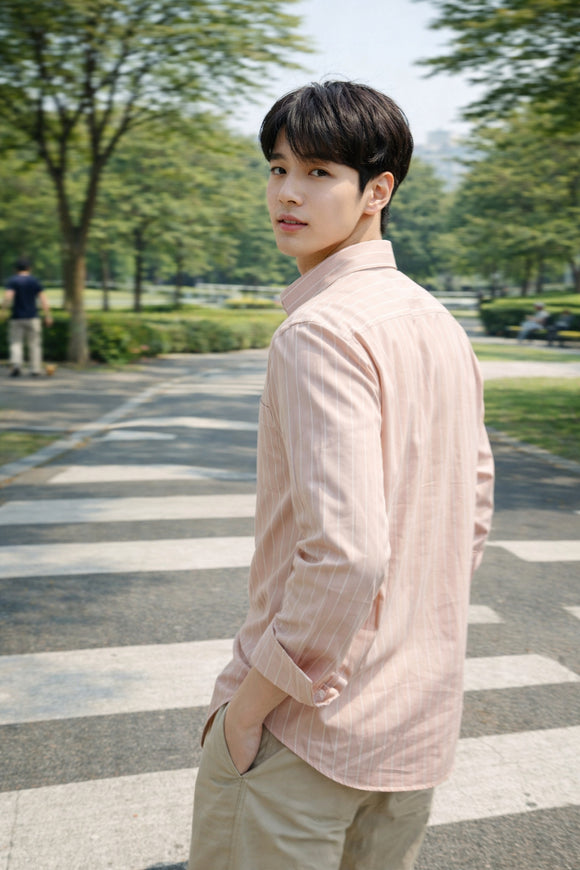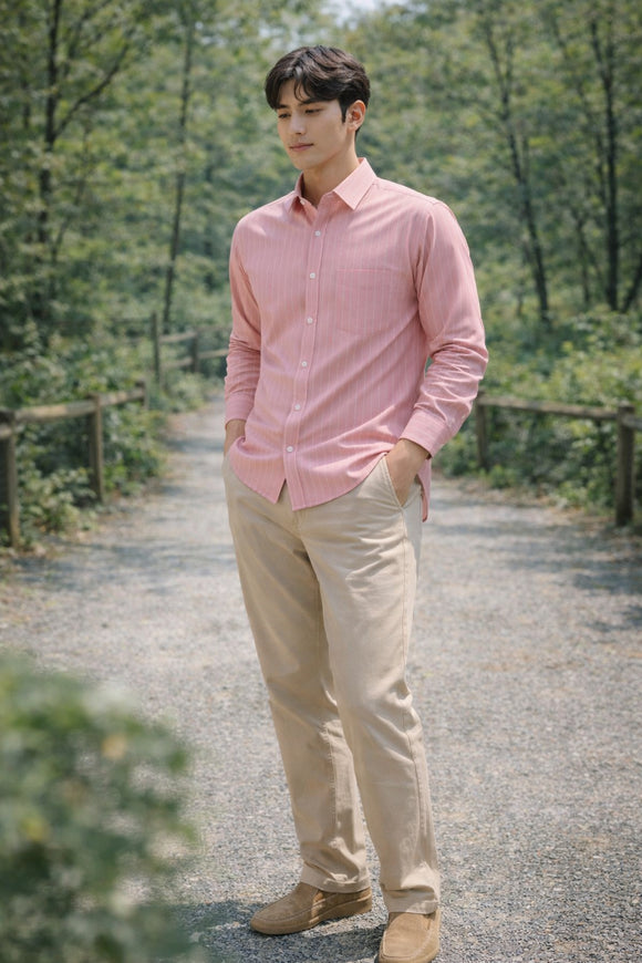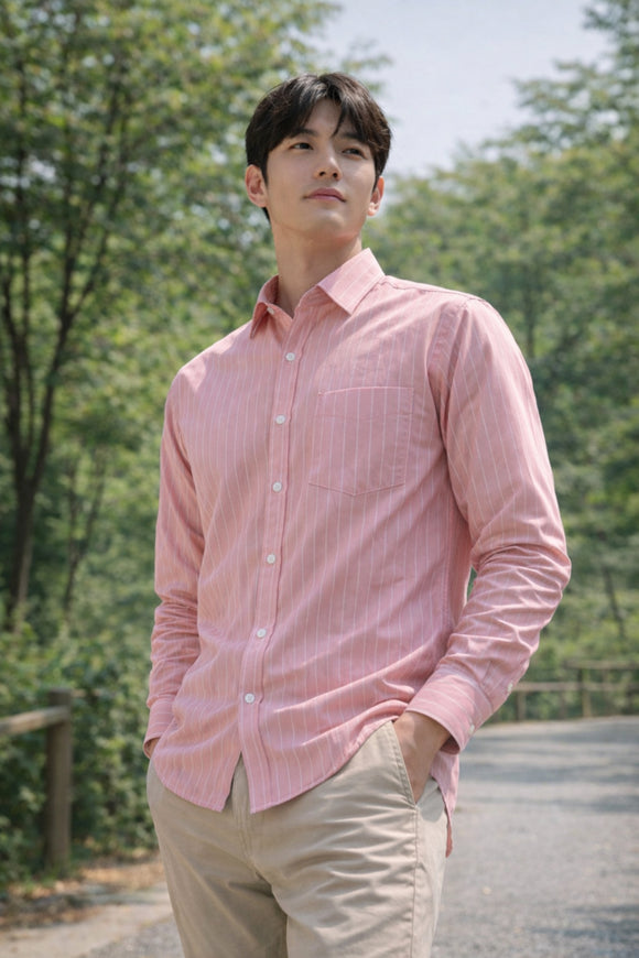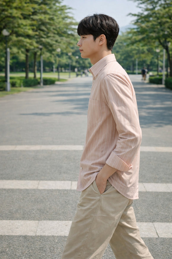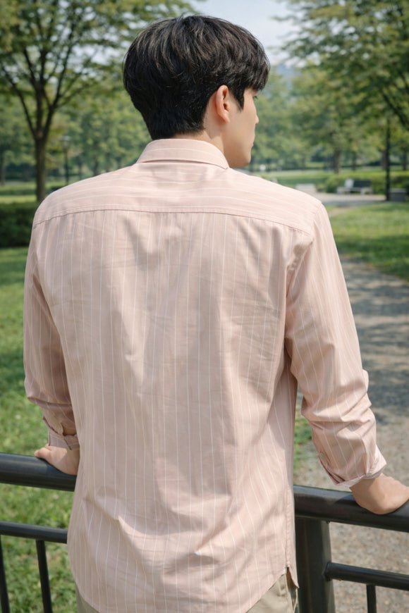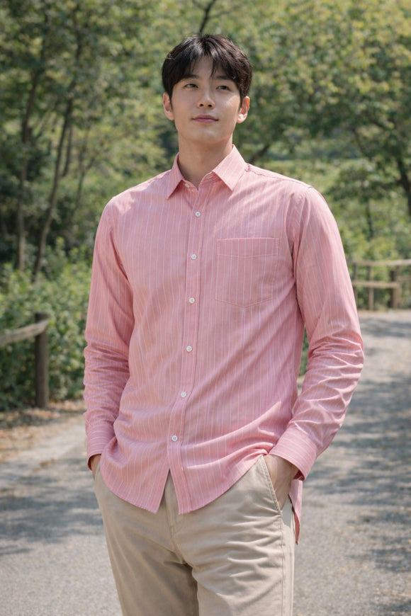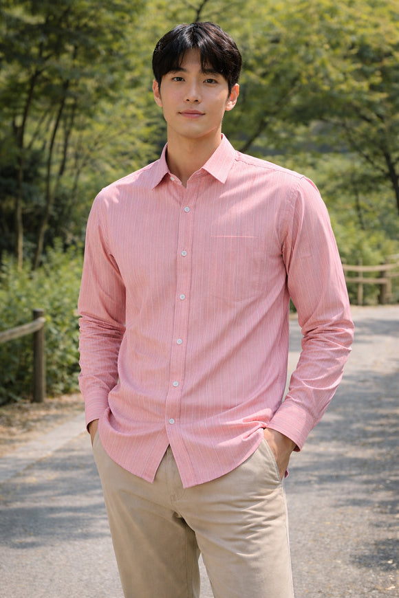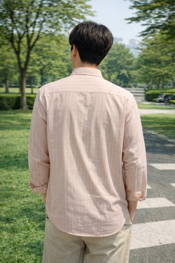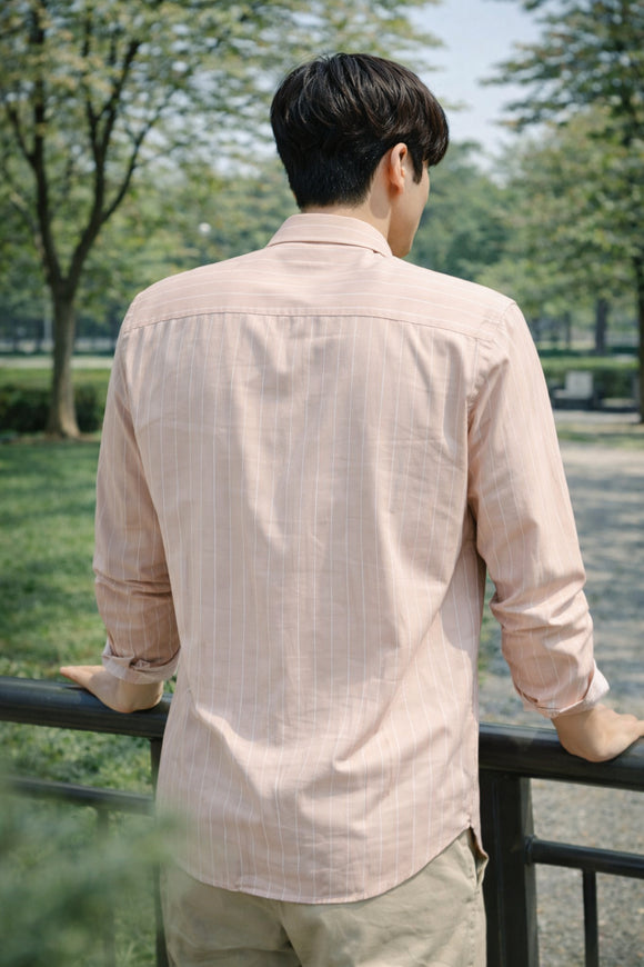 Mens Light Pink Striped Slim Fit Casual Shirt