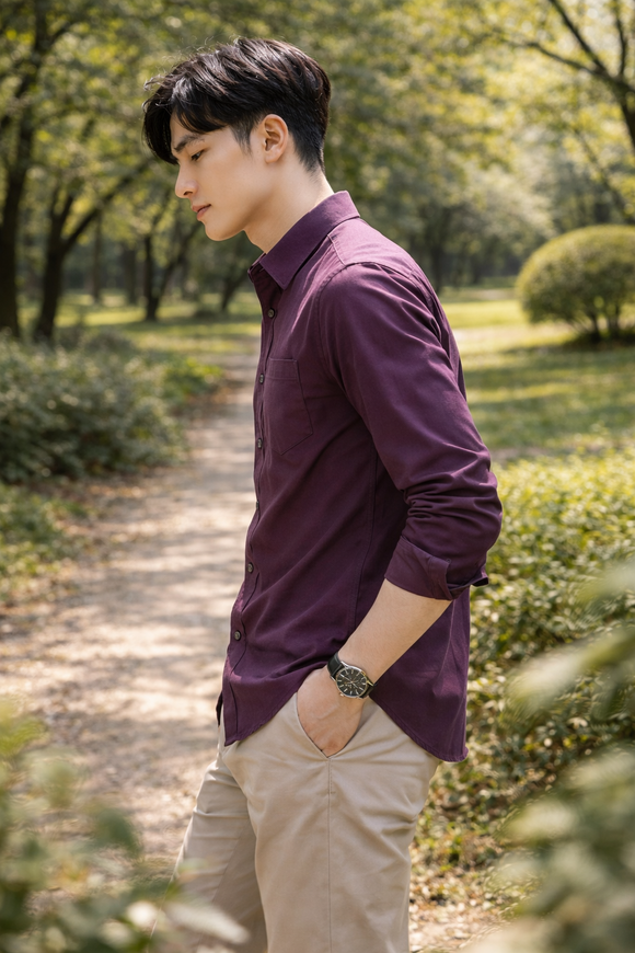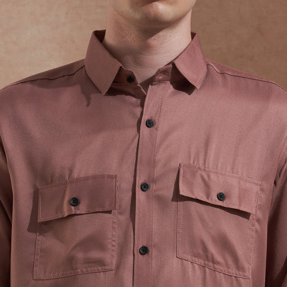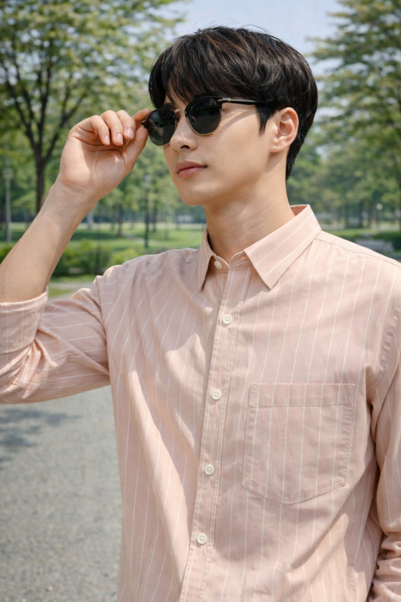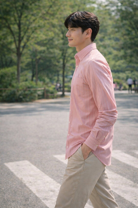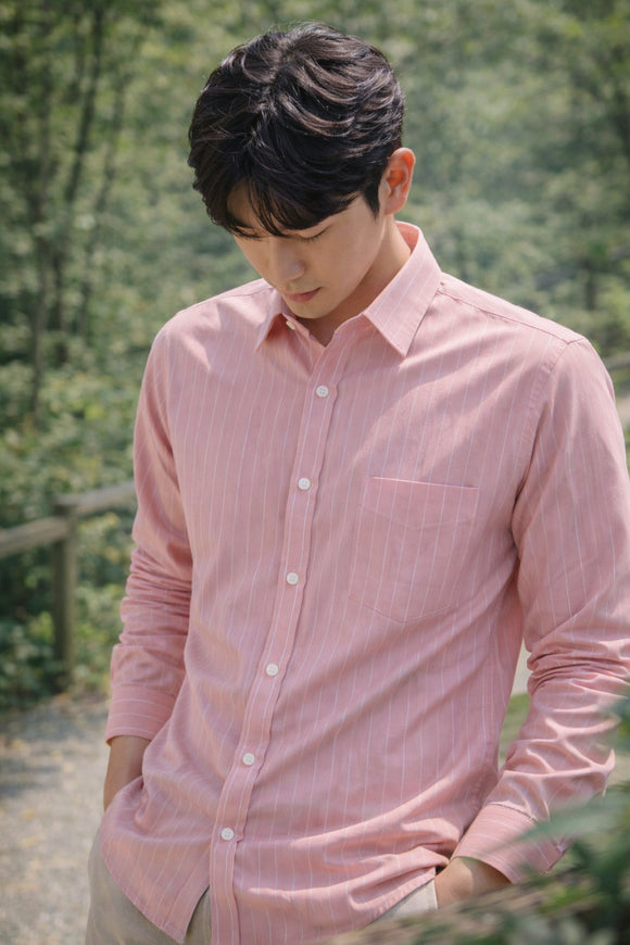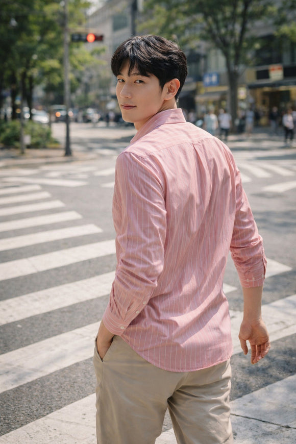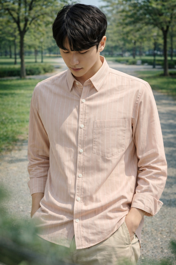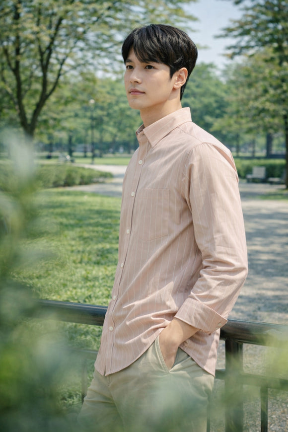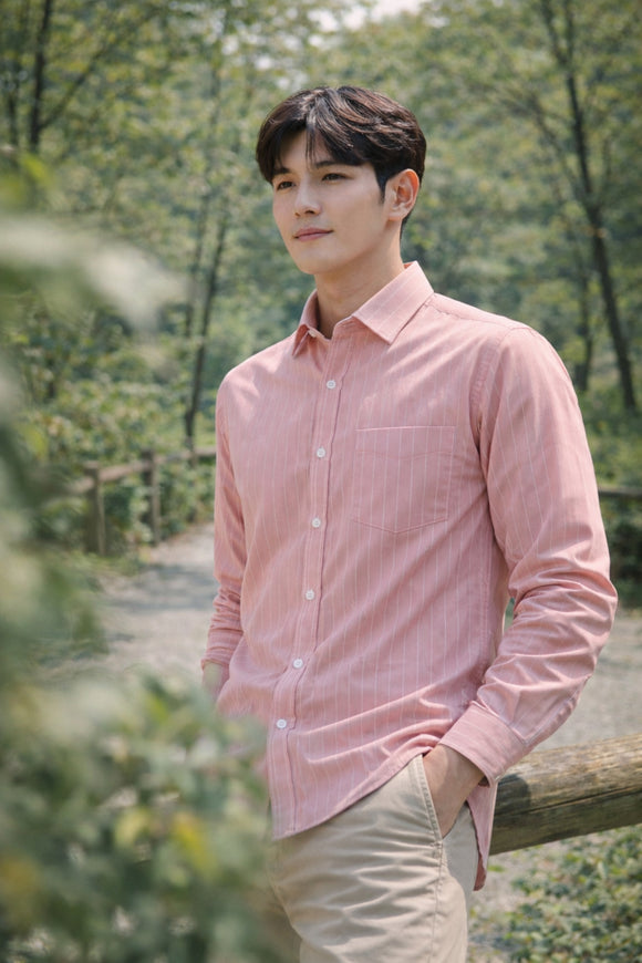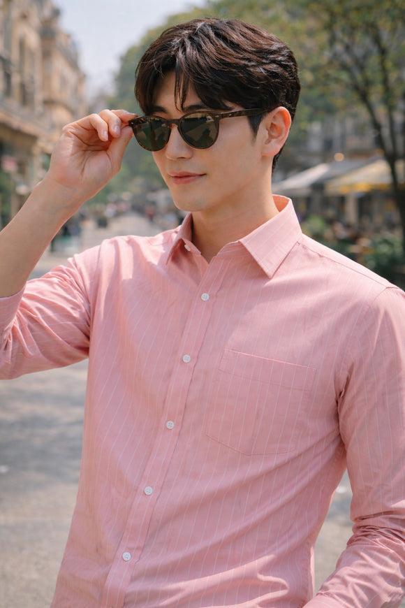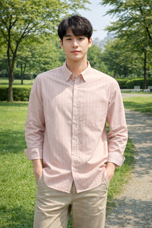 Mens Light Pink Striped Slim Fit Casual Shirt