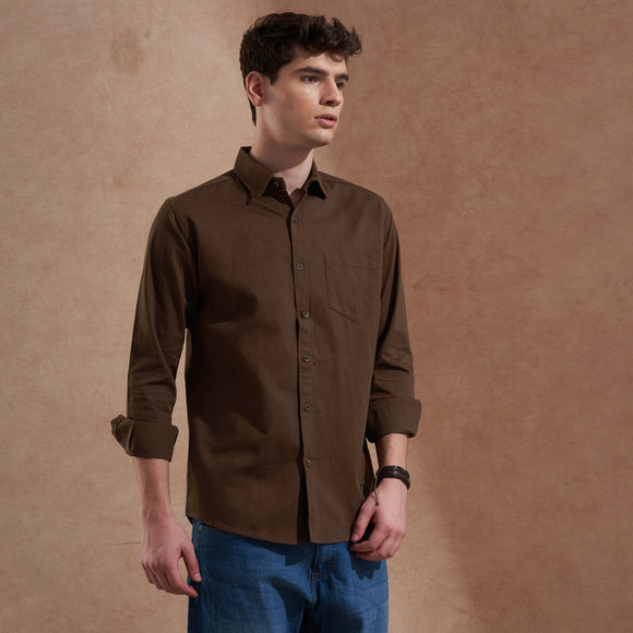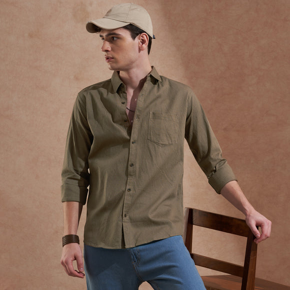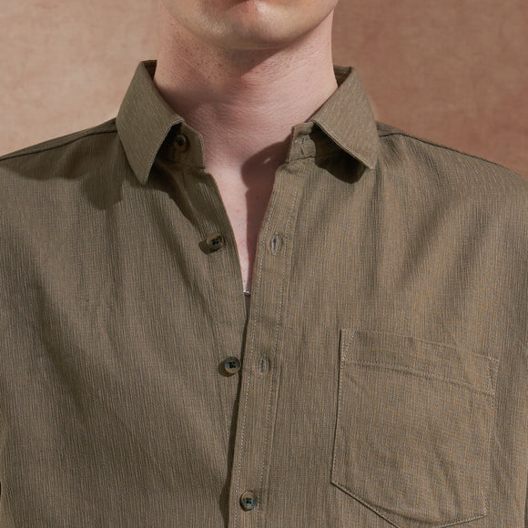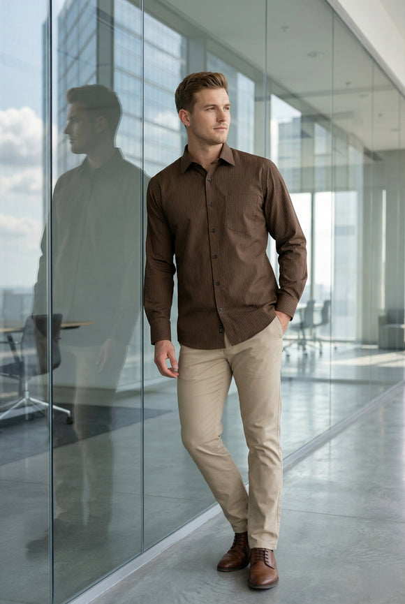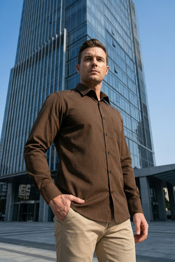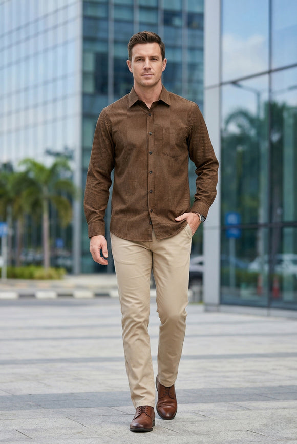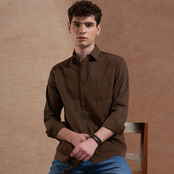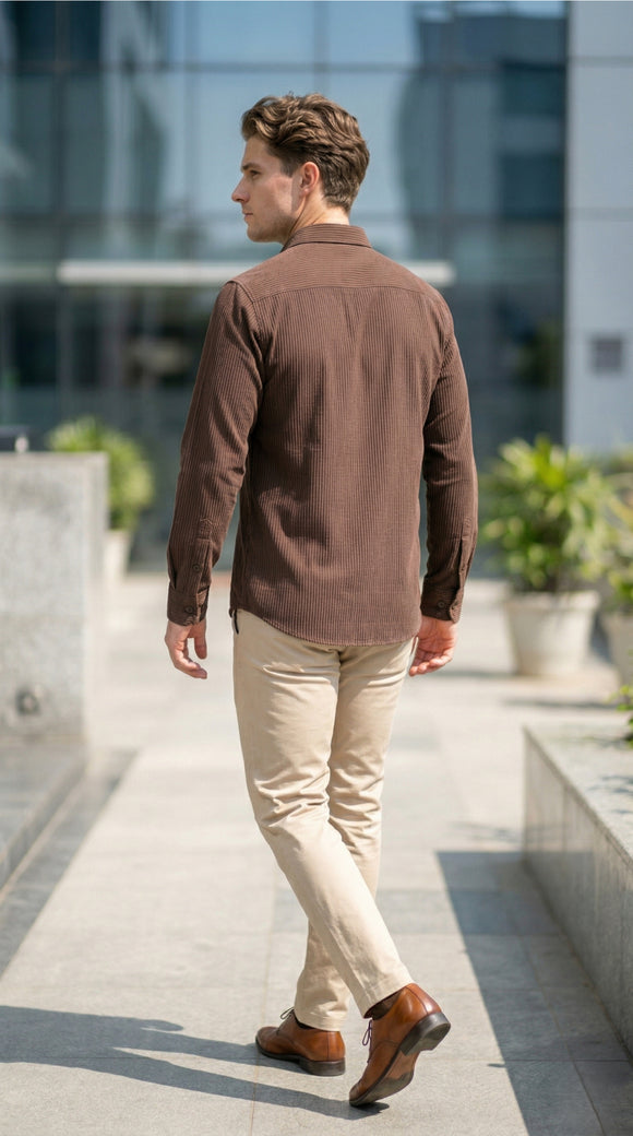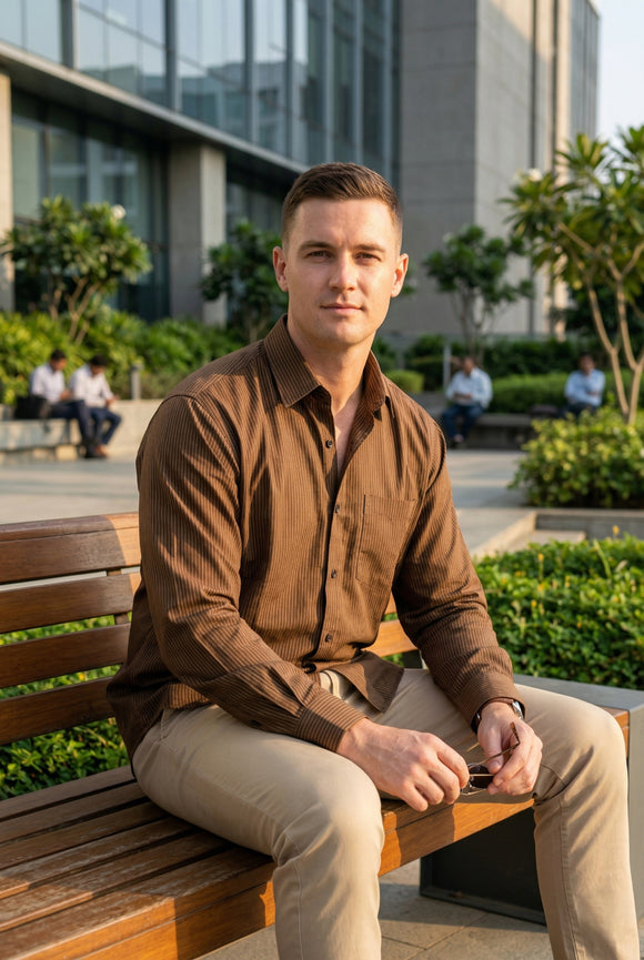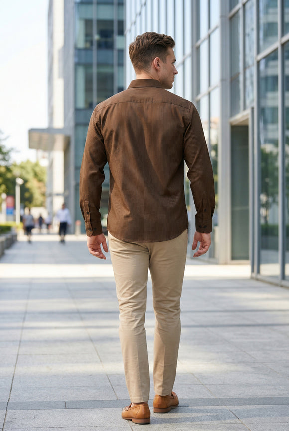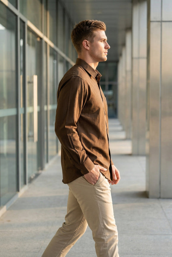Men Brown Textured Striped Slim Fit Casual Shirt