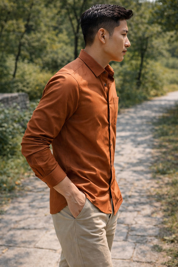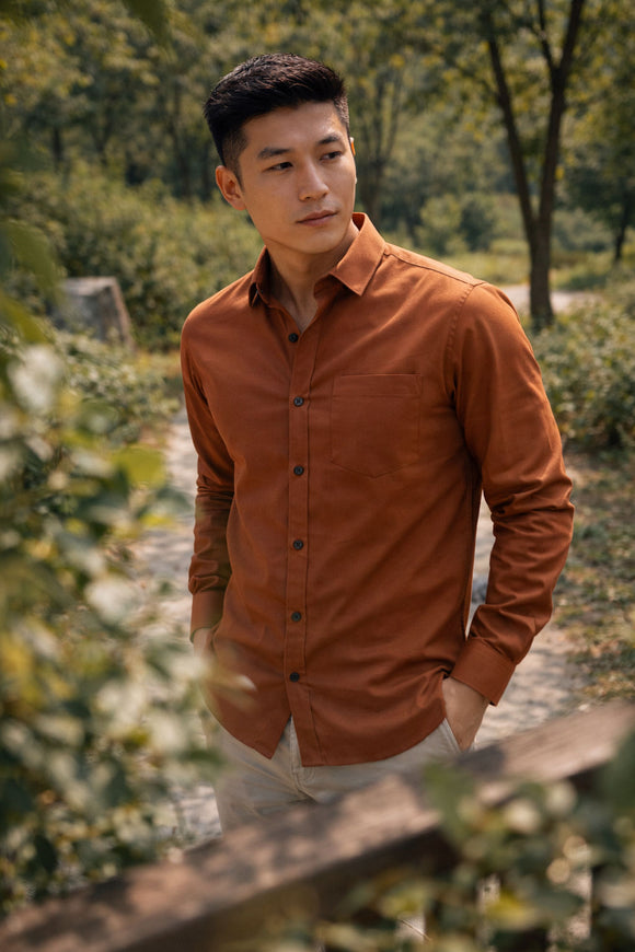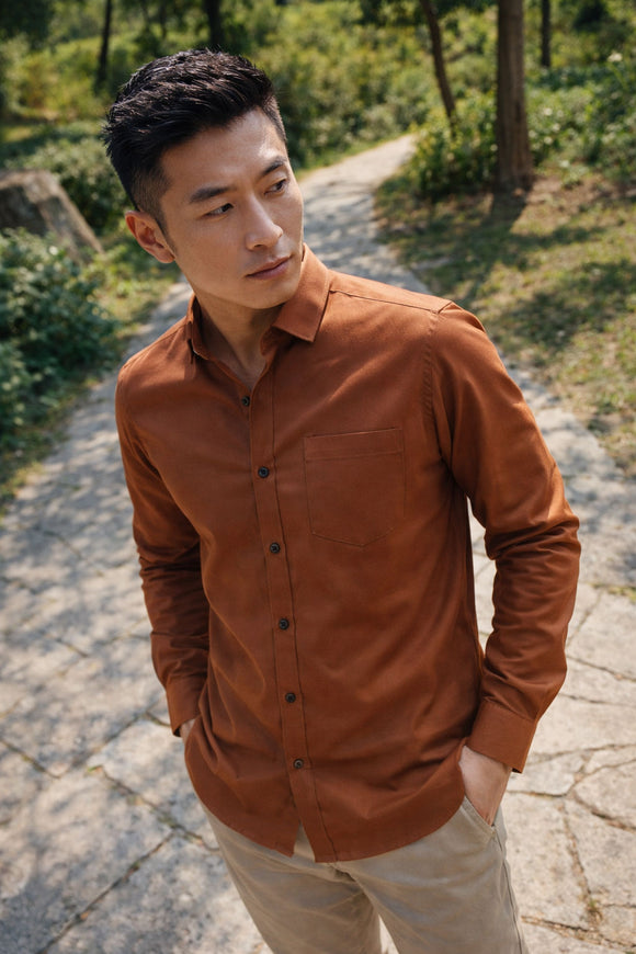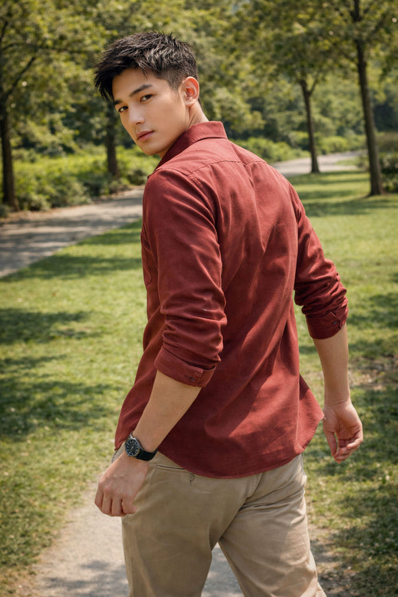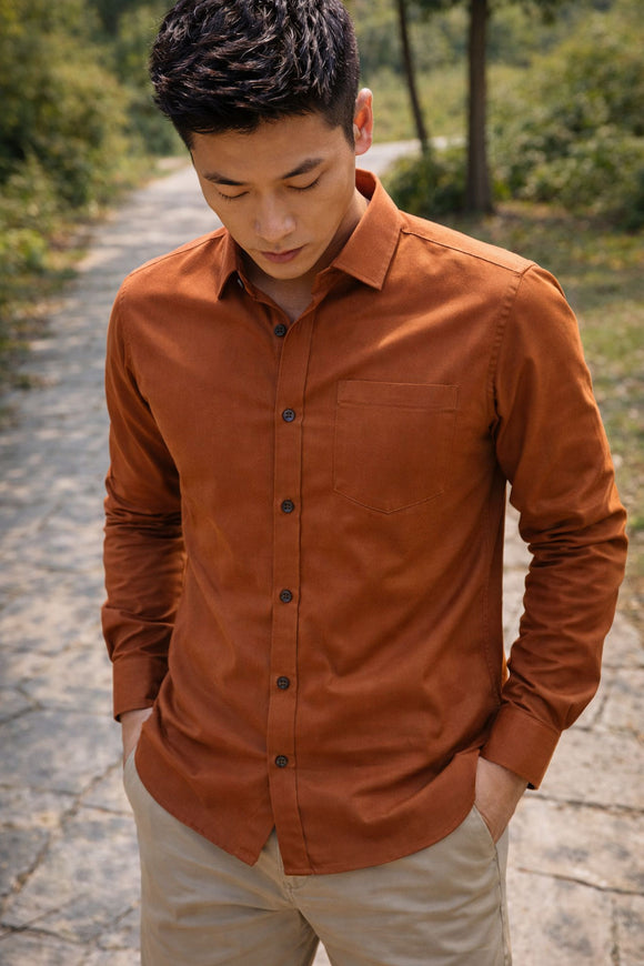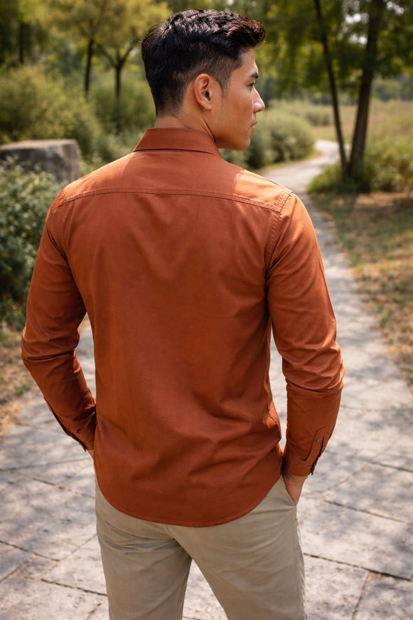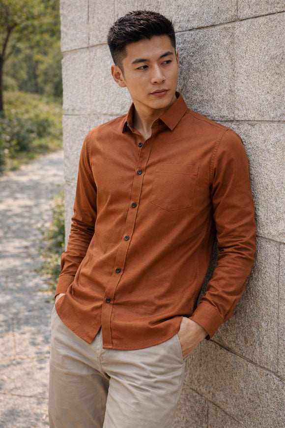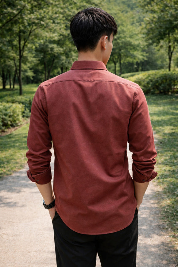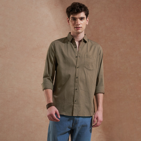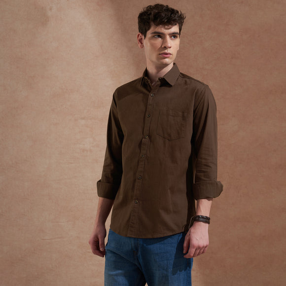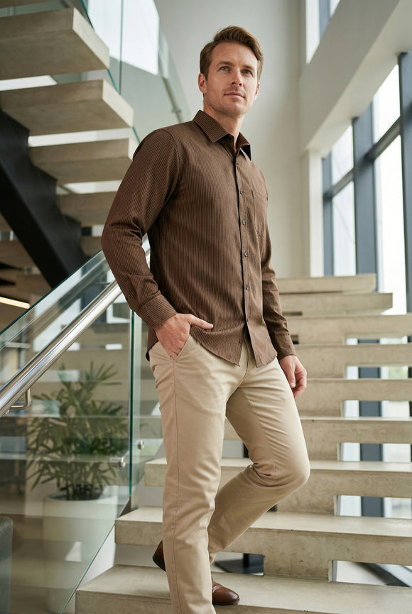 Men Brown Textured Striped Slim Fit Casual Shirt