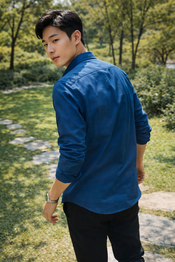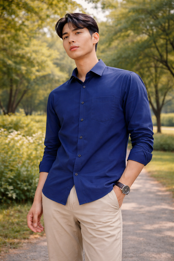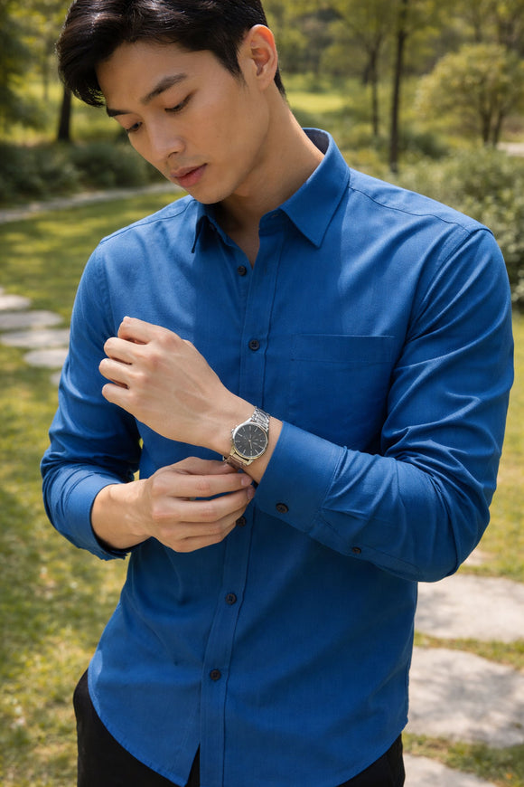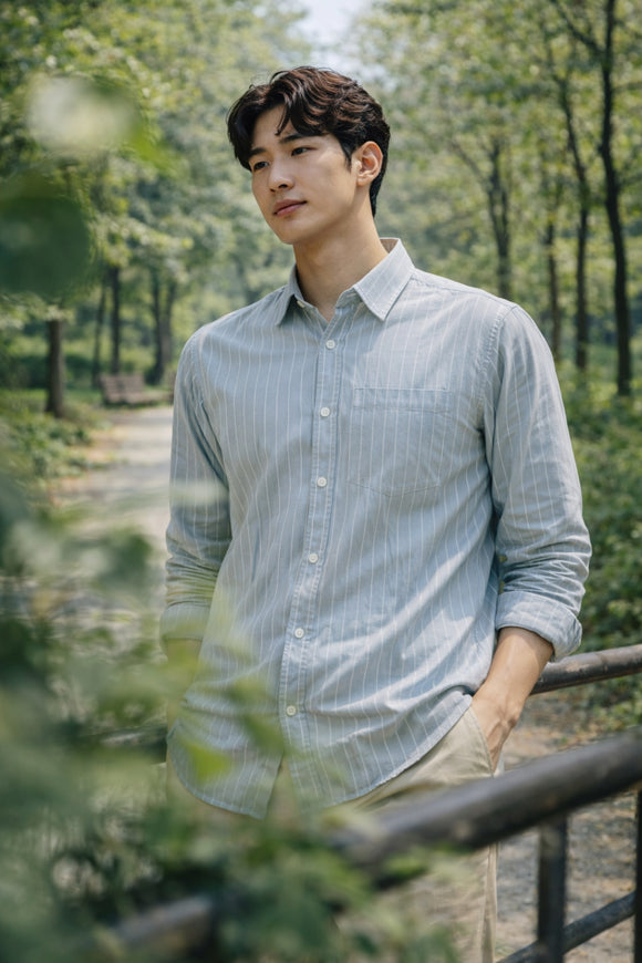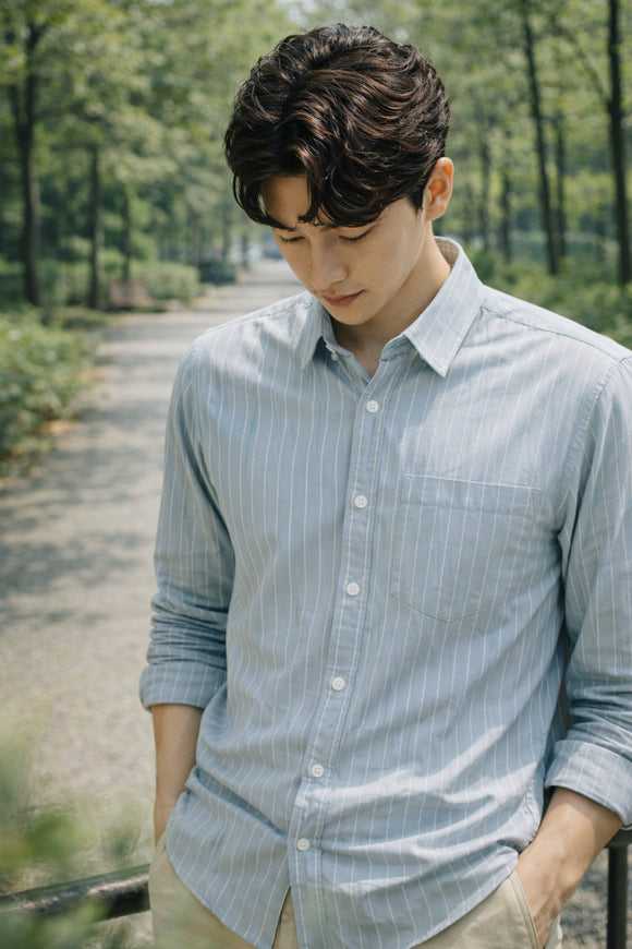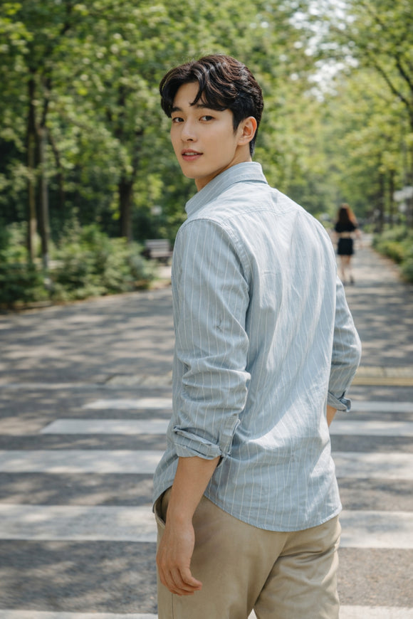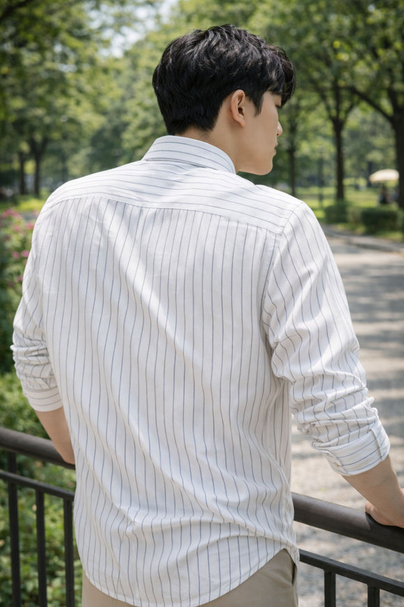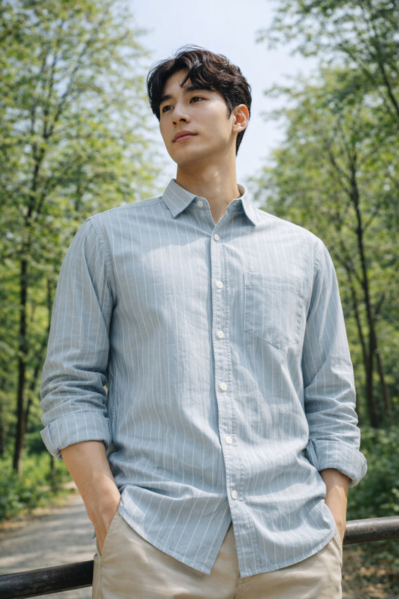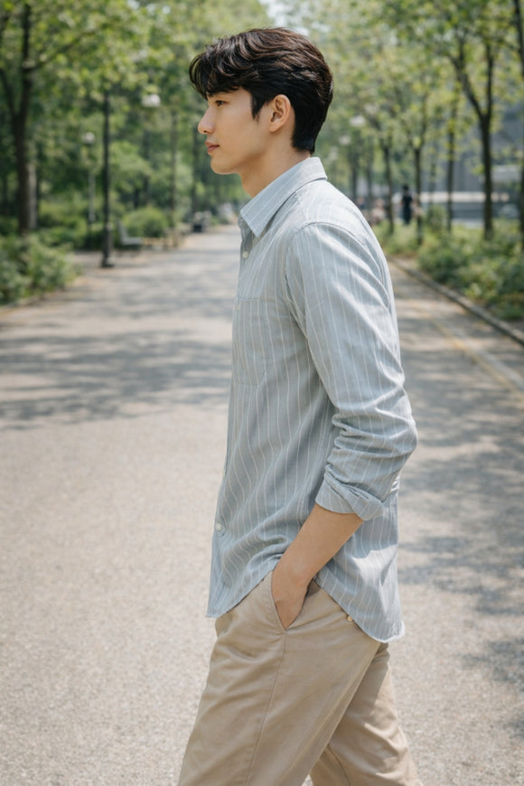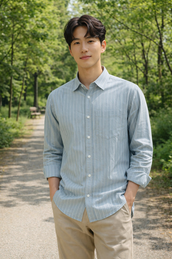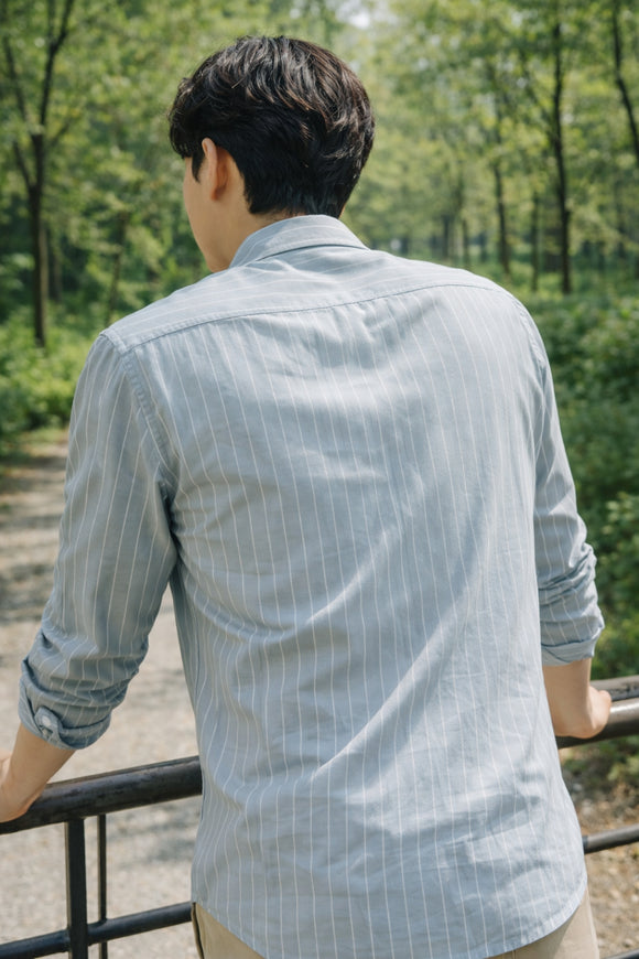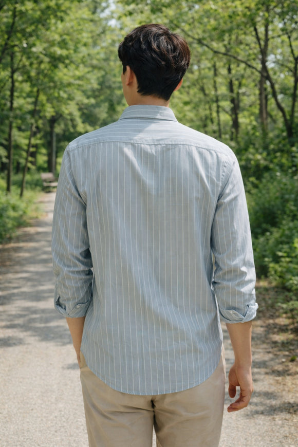 Mens Light Blue Striped Slim Fit Casual Shirt
