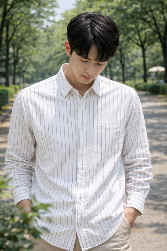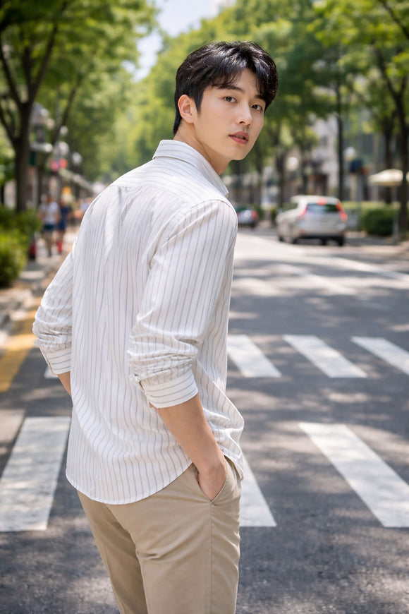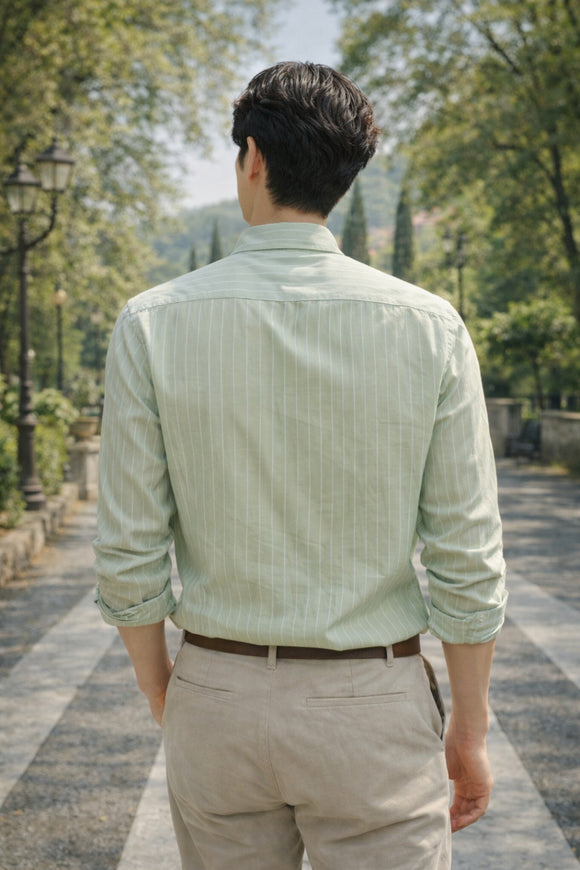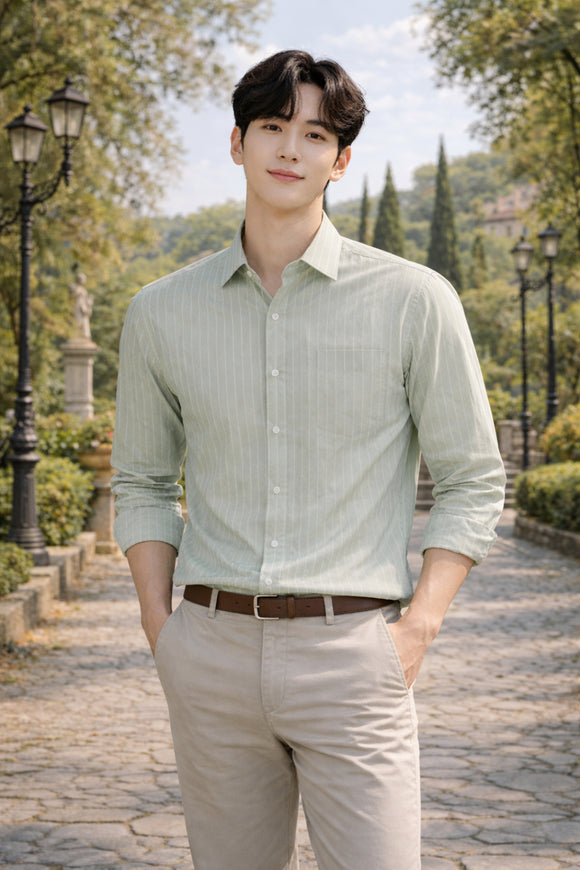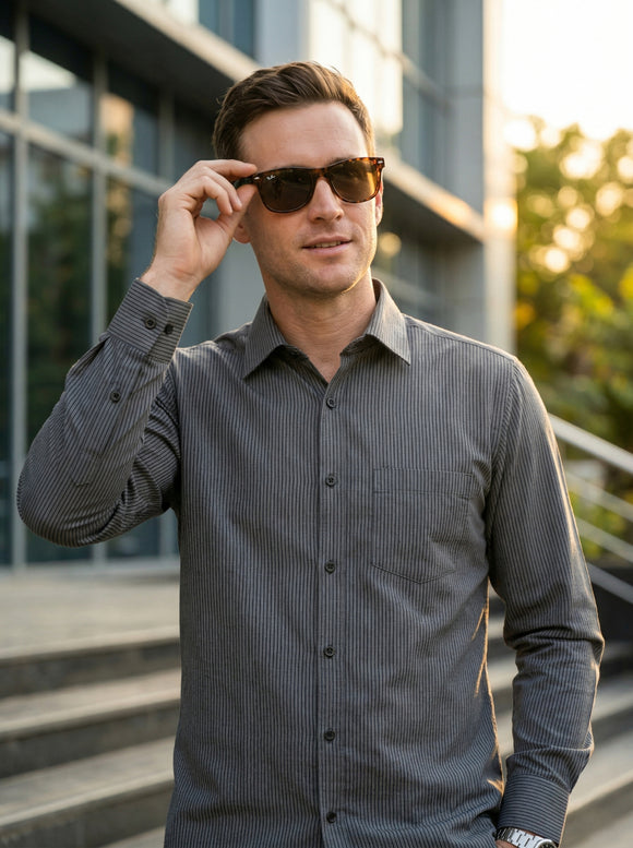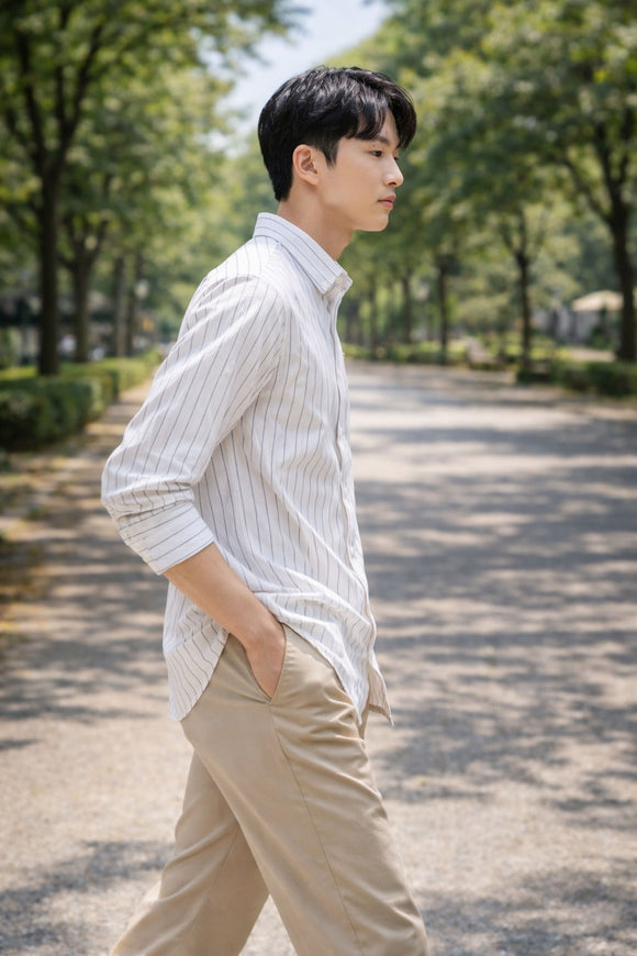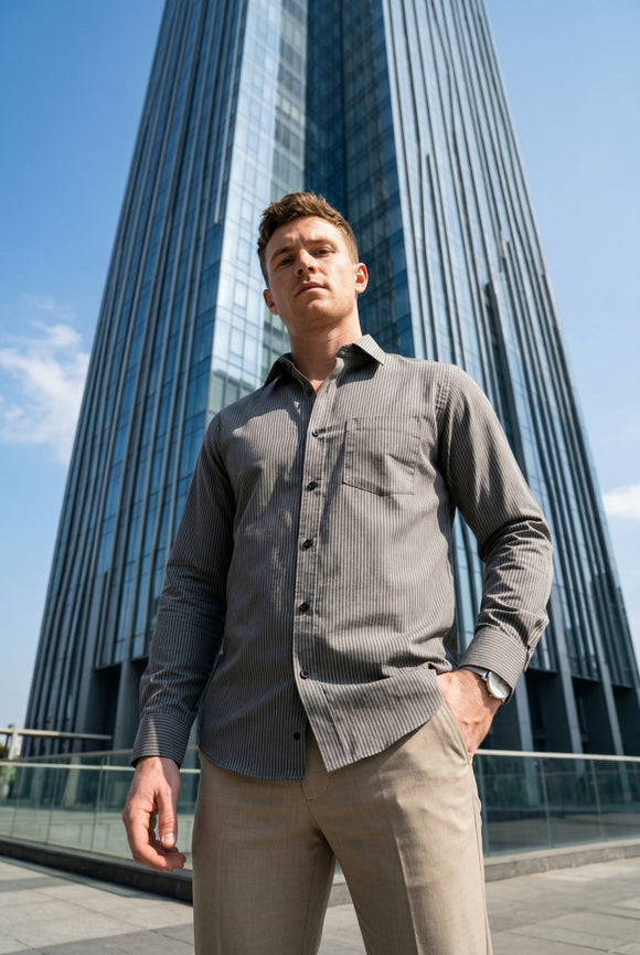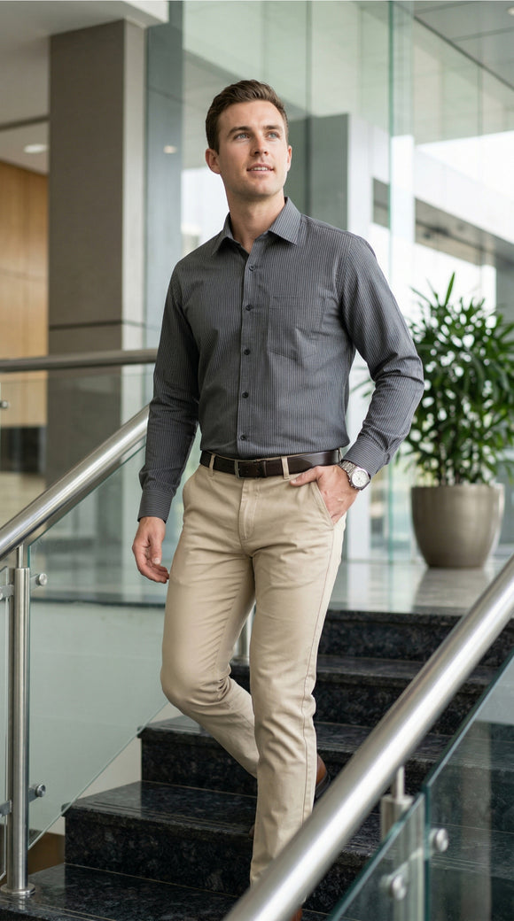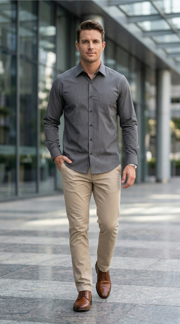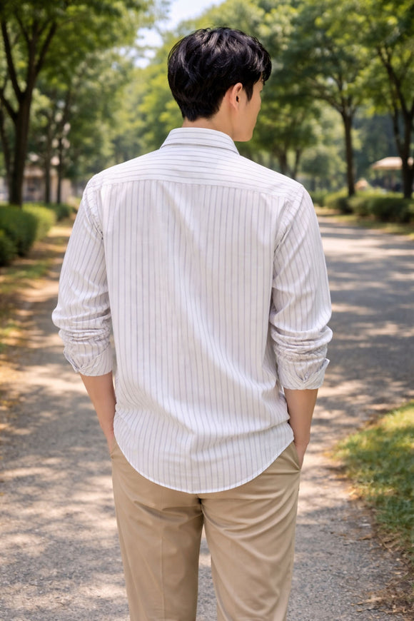 Mens Light Grey Striped Slim Fit Casual Shirt