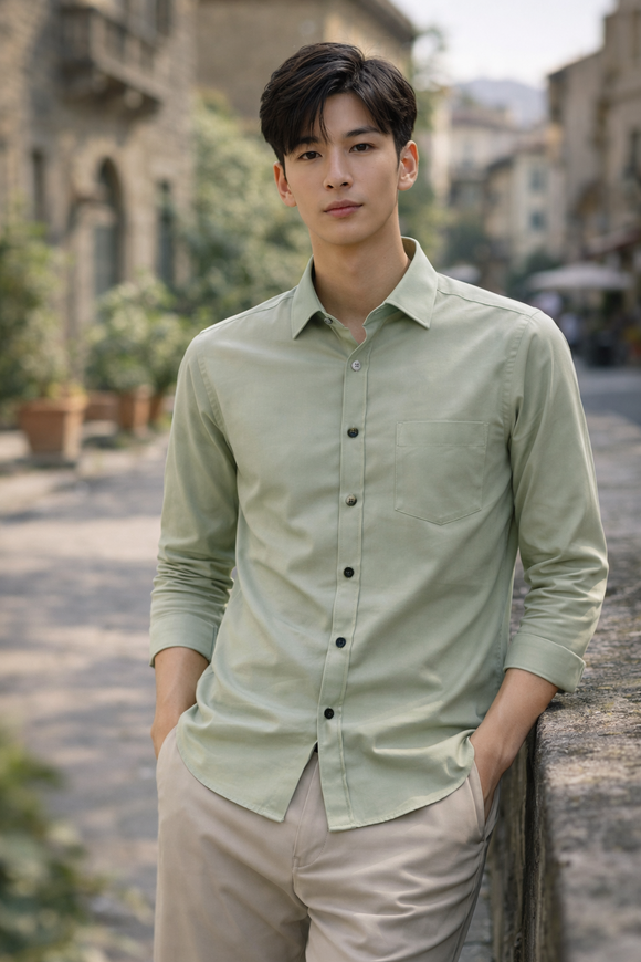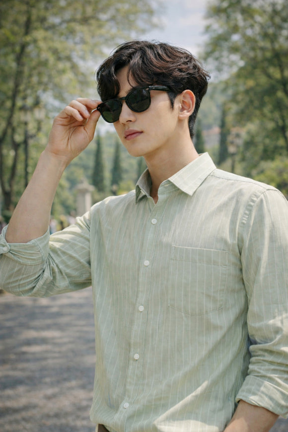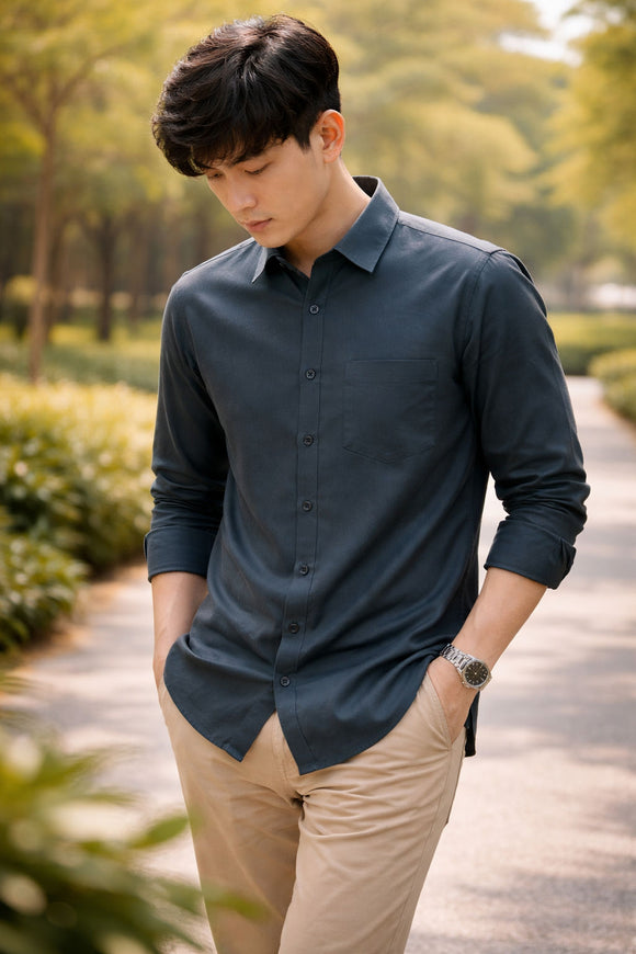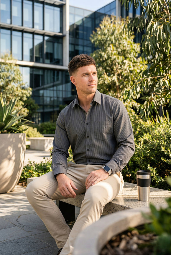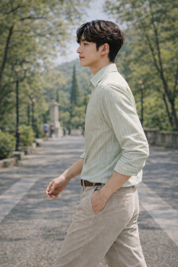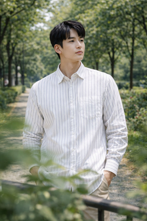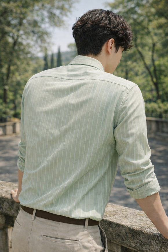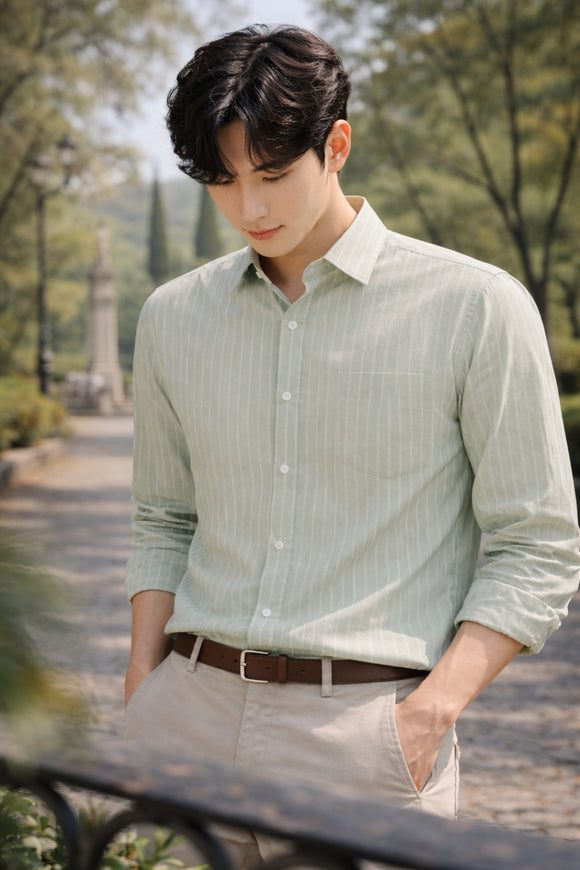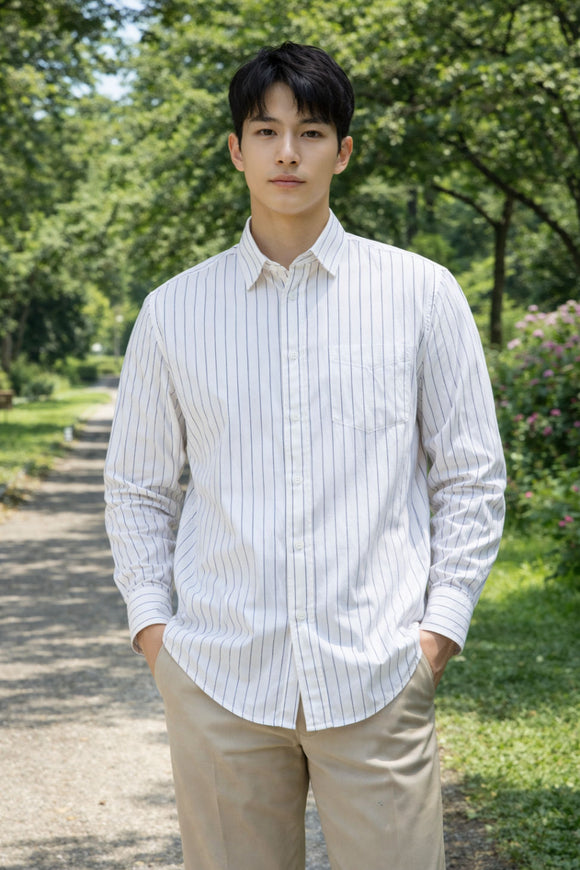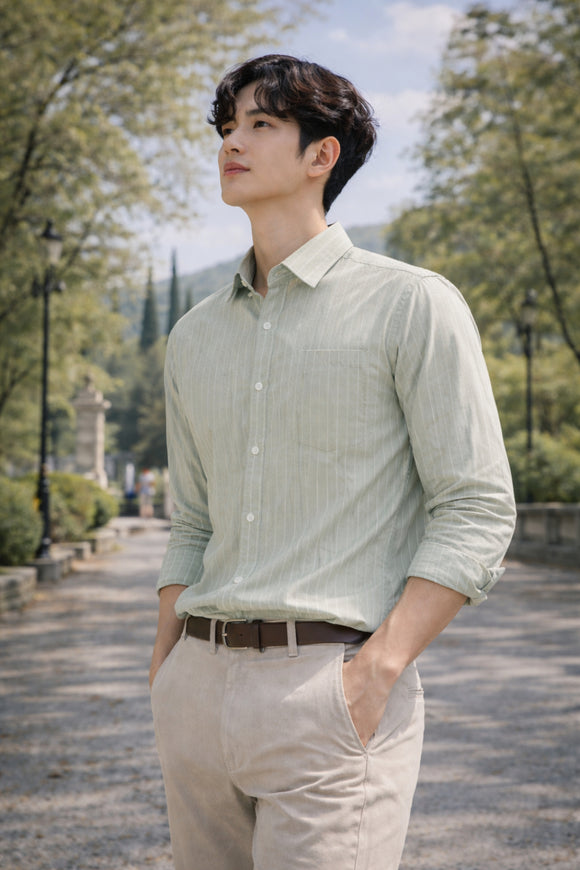 Mens Light Grey Striped Slim Fit Casual Shirt