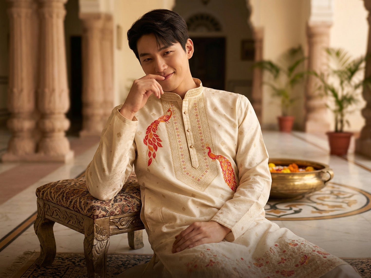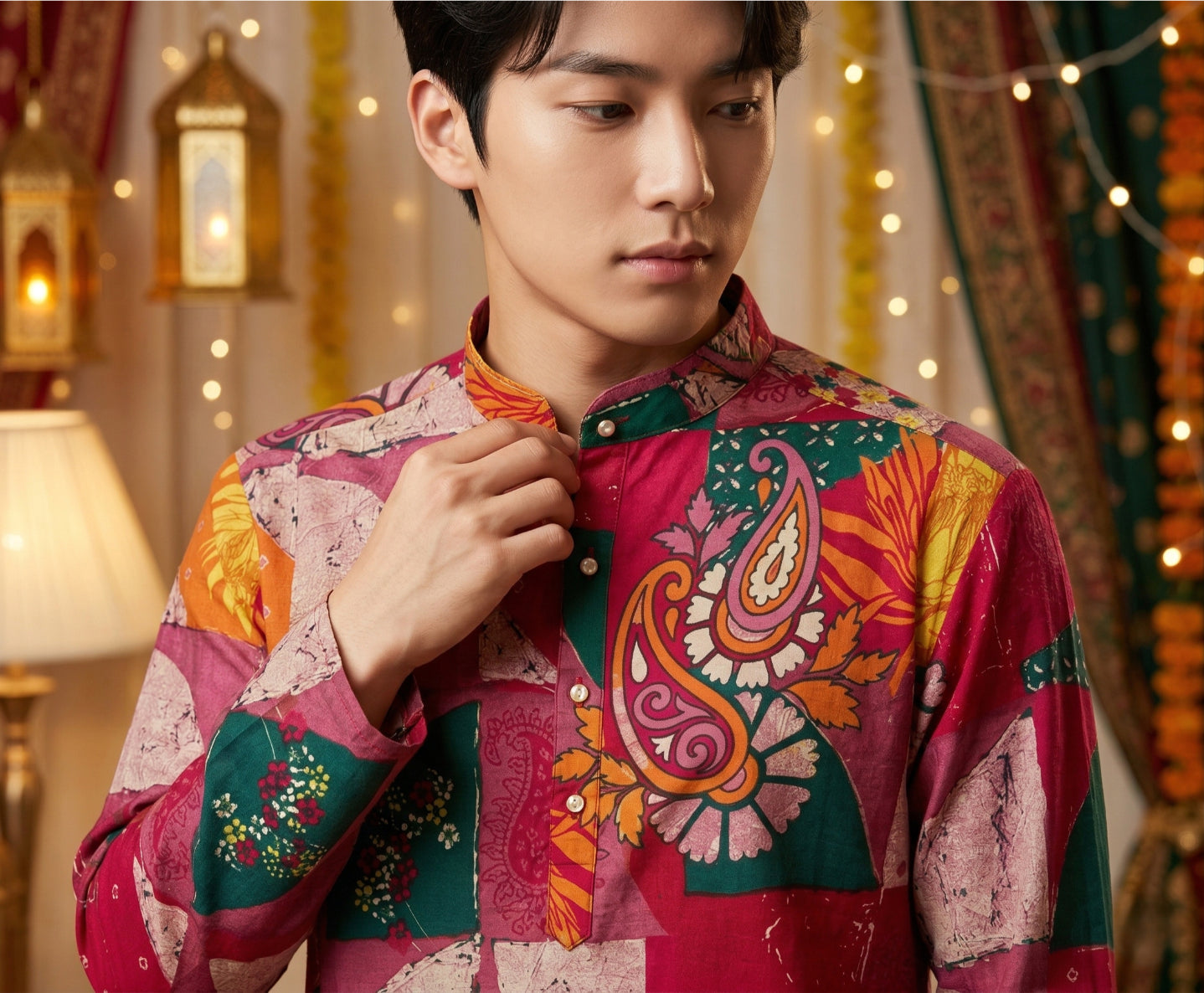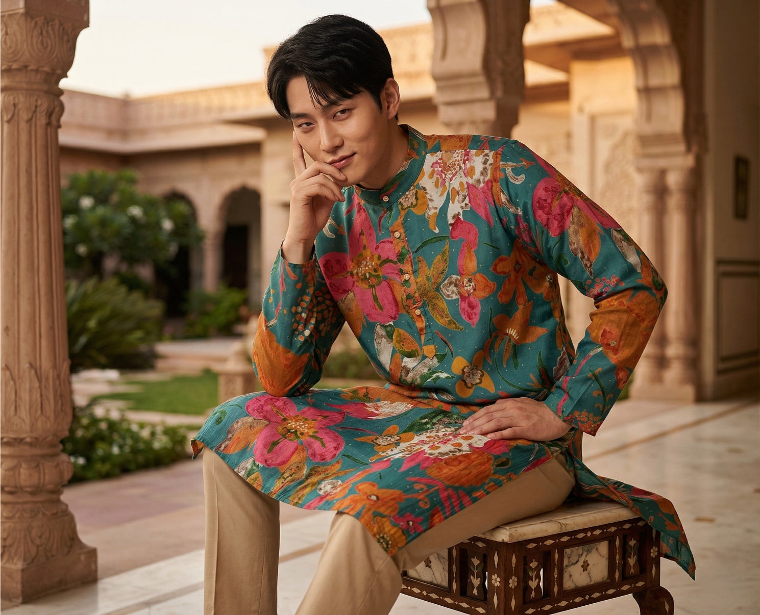 Men’s Multicolor Floral Printed Kurta | Designer Ethnic Wear for Weddings, Haldi & Festive Celebrations
