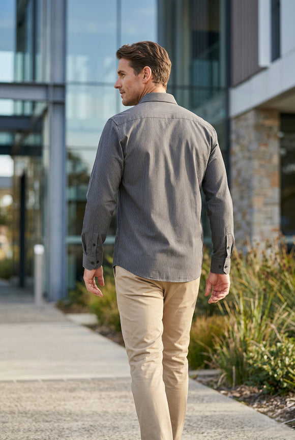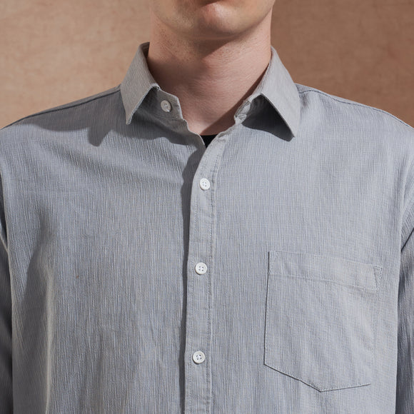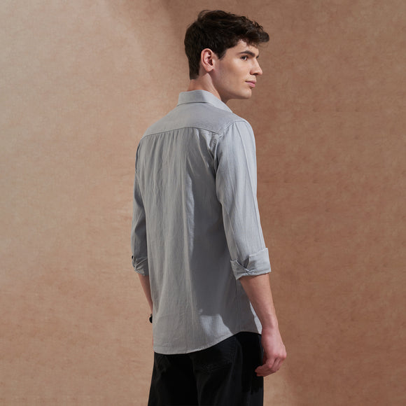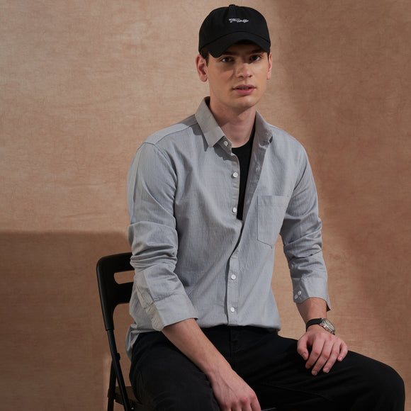 Men Grey Textured Striped Slim Fit Casual Shirt