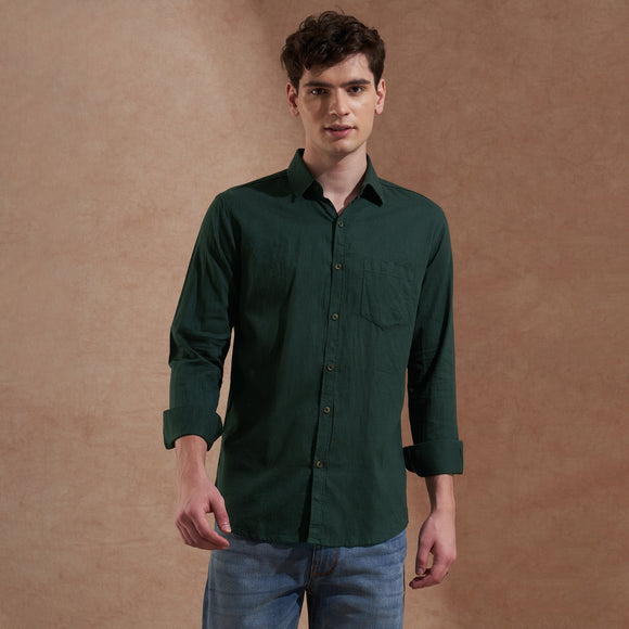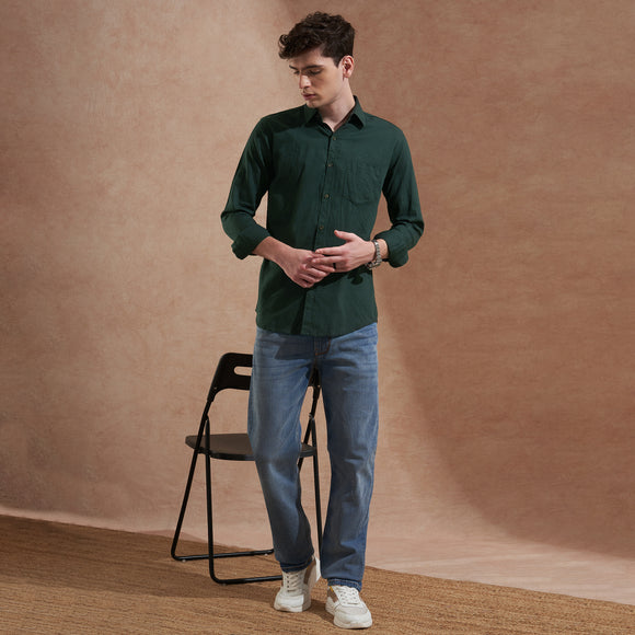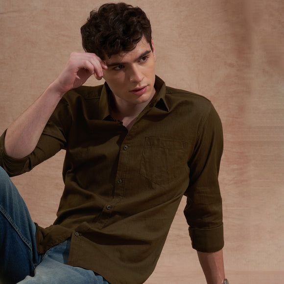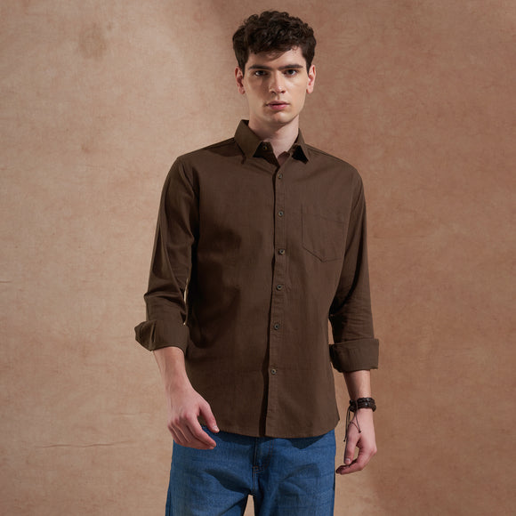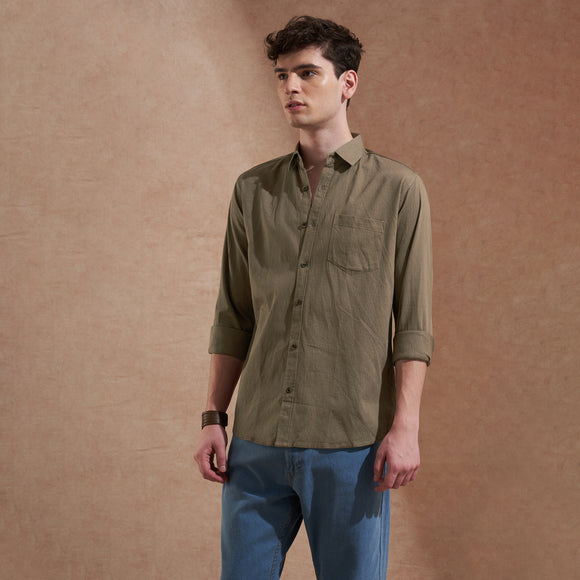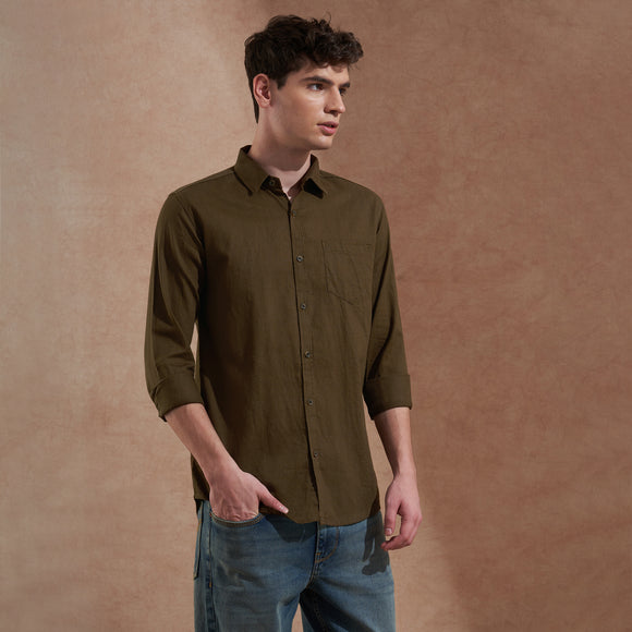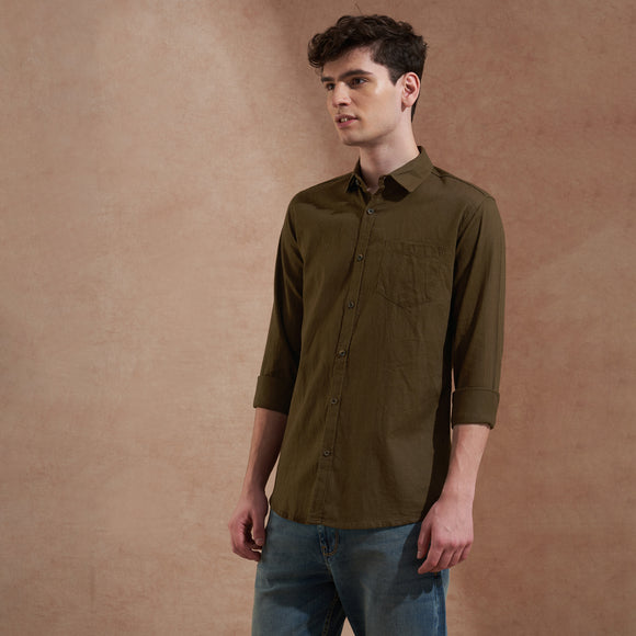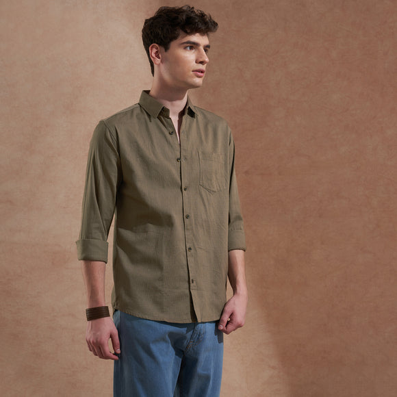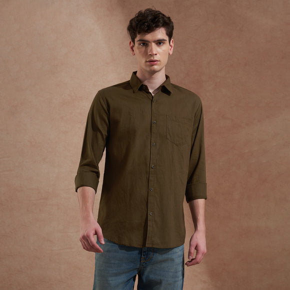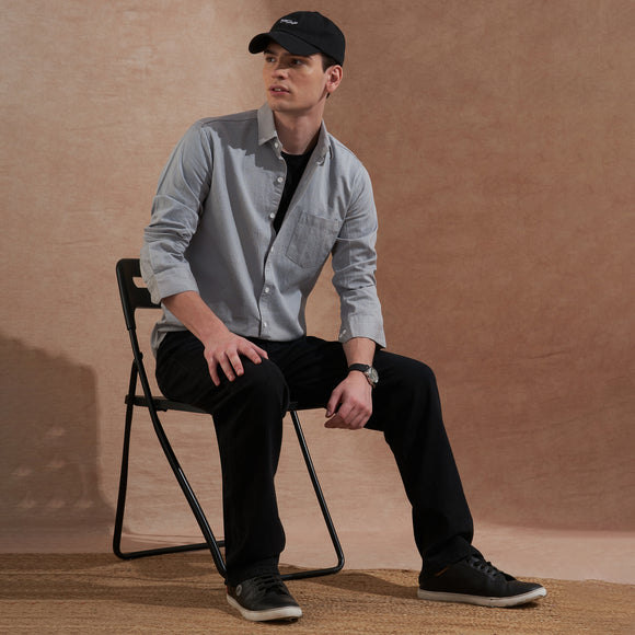 Men Dark Grey Solid Spread Collar Slim Fit Casual Shirt