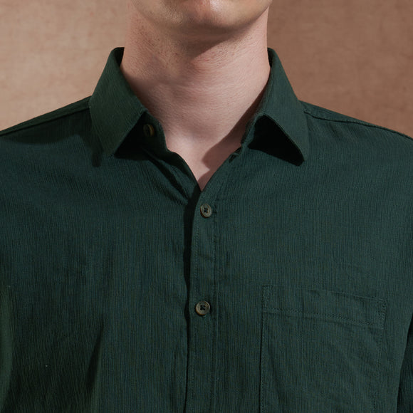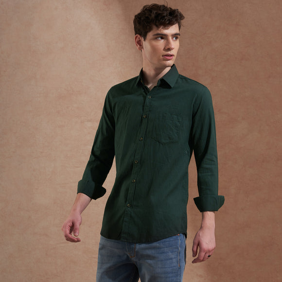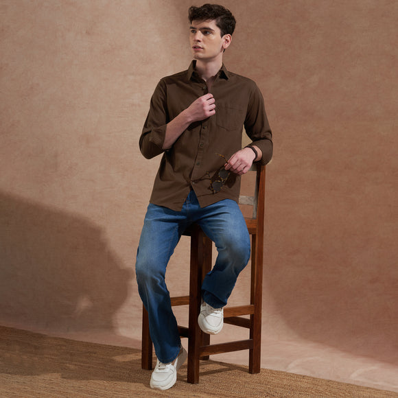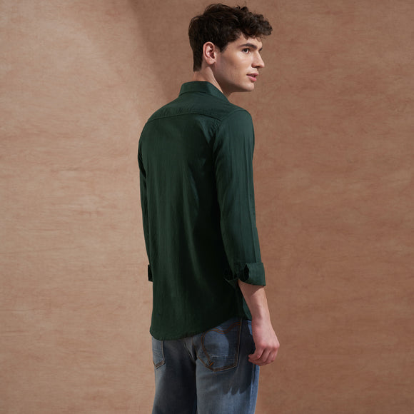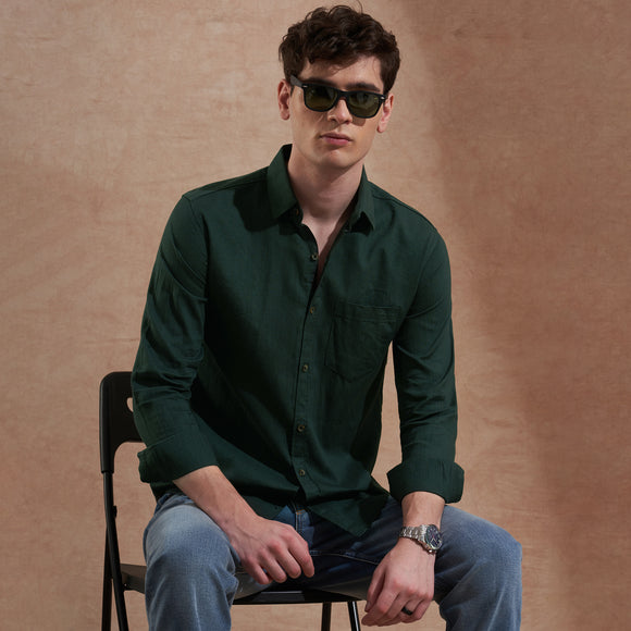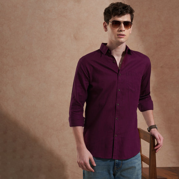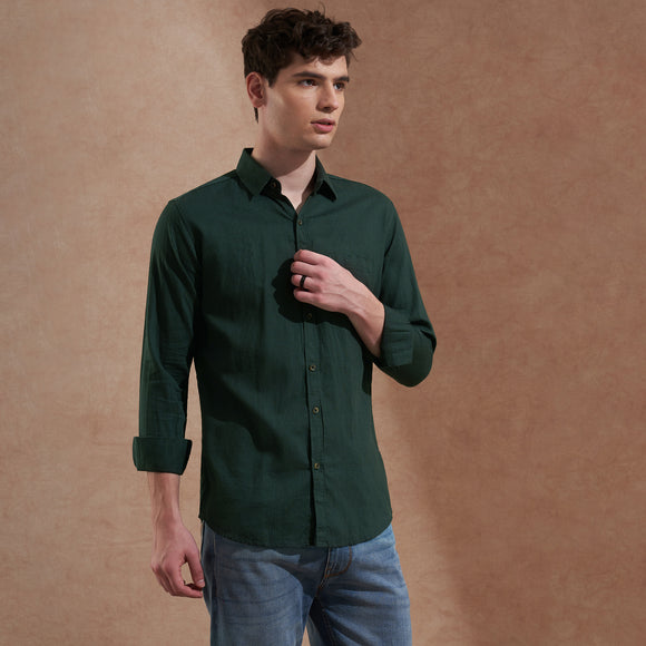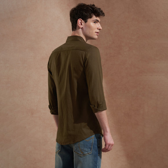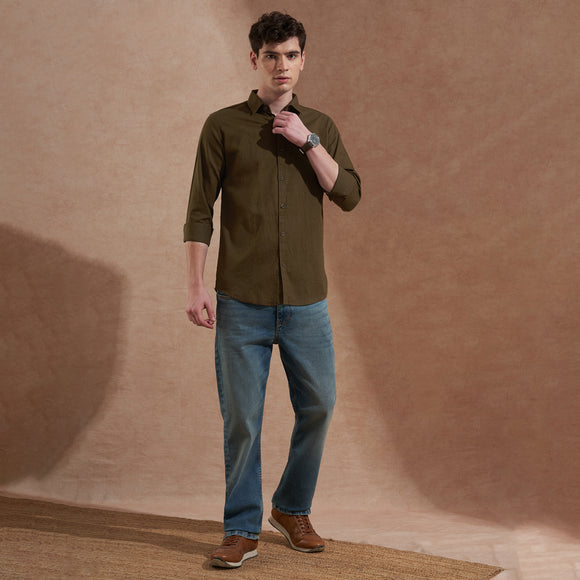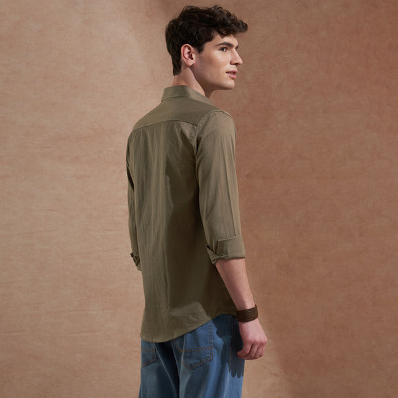 Men Dark Grey Solid Spread Collar Slim Fit Casual Shirt