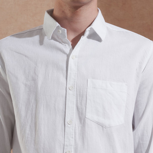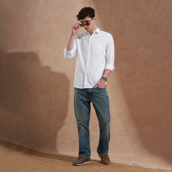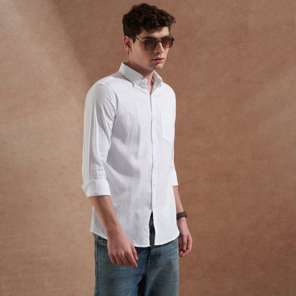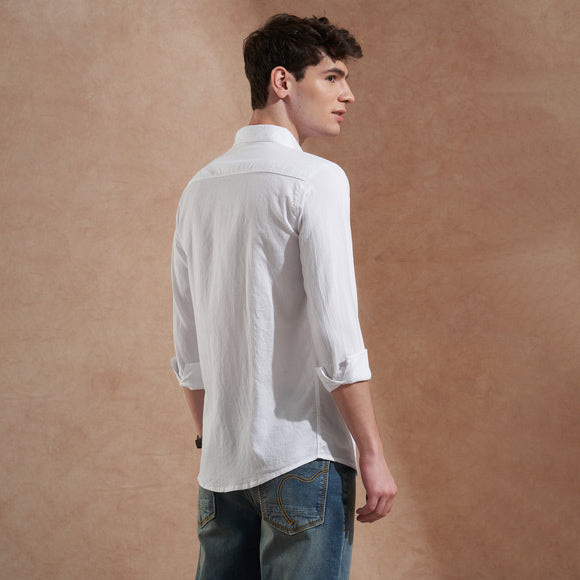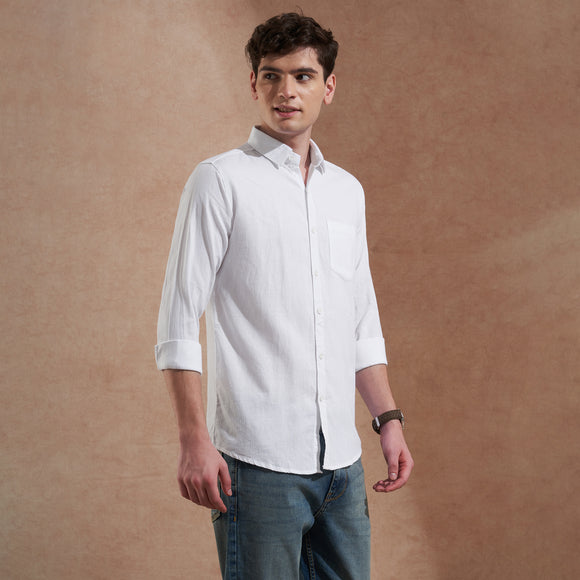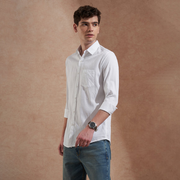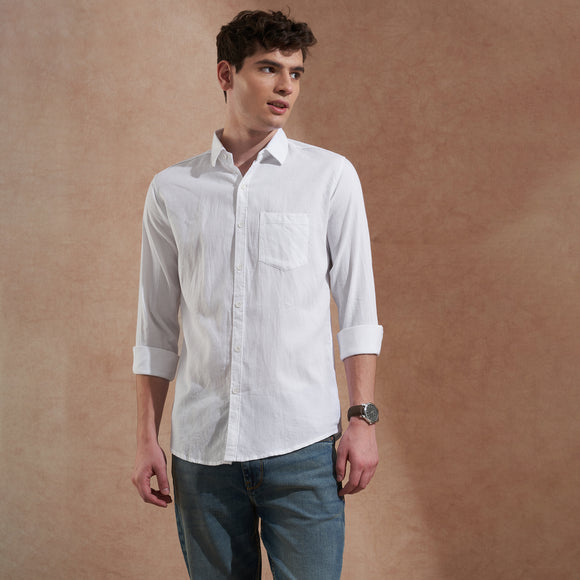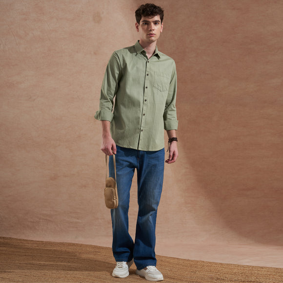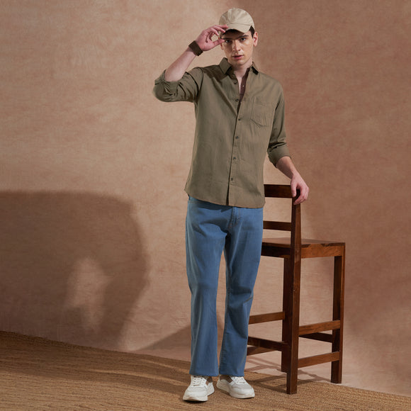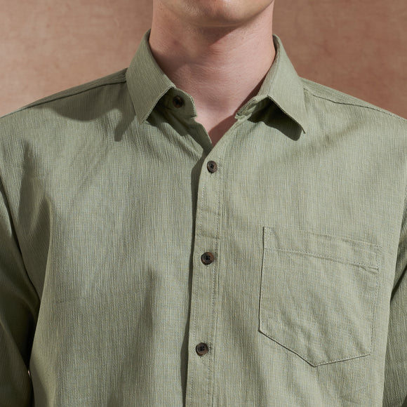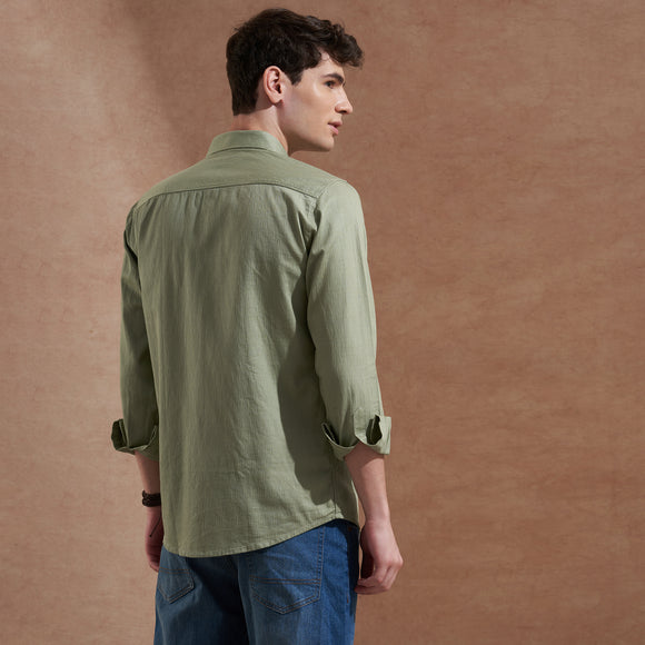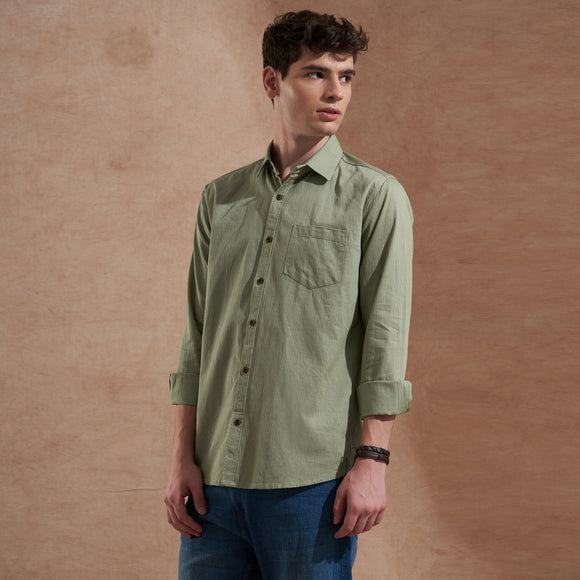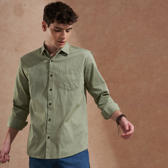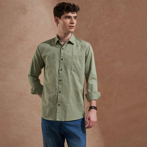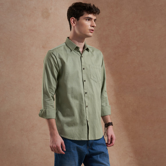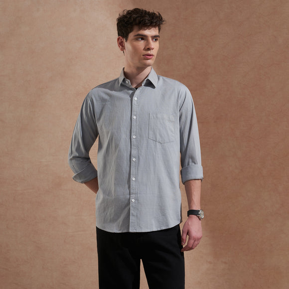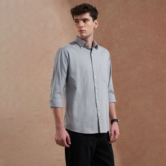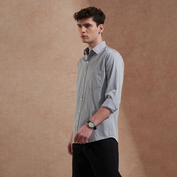 Men Light Grey Solid Spread Collar Slim Fit Casual Shirt