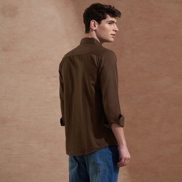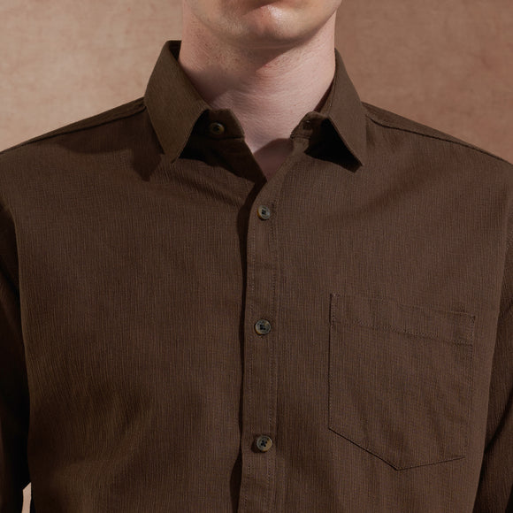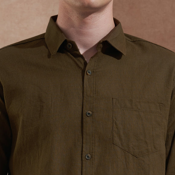 Men Dark Brown Textured Striped Slim Fit Casual Shirt