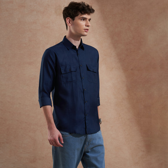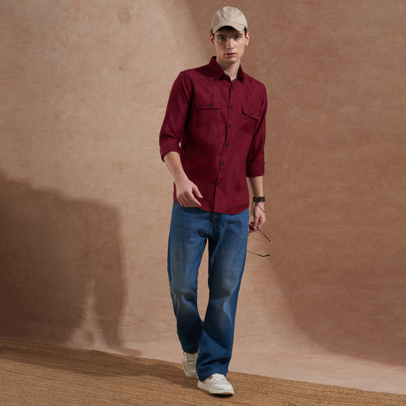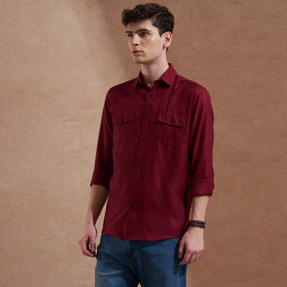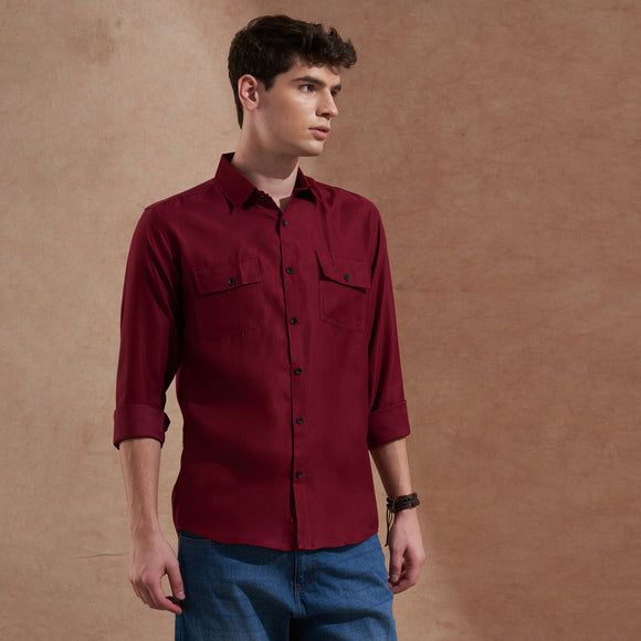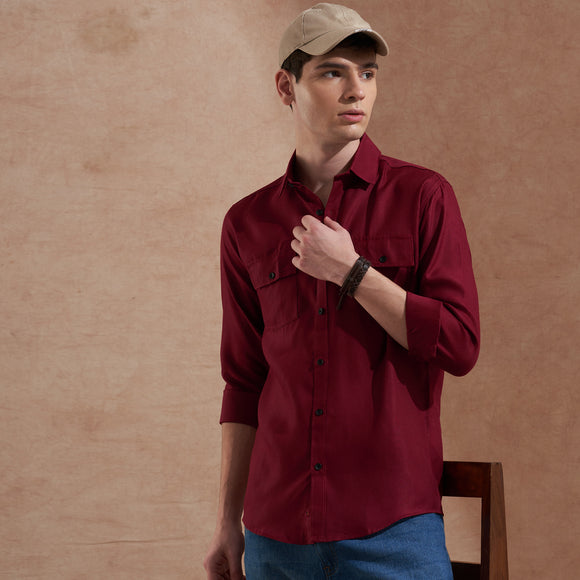 Men Dark Purple Solid Spread Collar Slim Fit Casual Shirt