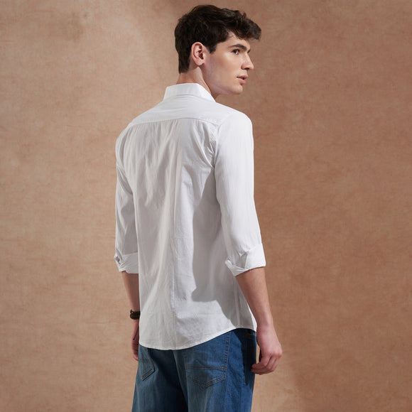 Men White Solid Spread Collar Slim Fit Casual Shirt