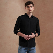 Men Black Solid Spread Collar Slim Fit Casual Shirt